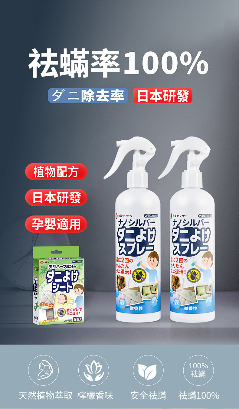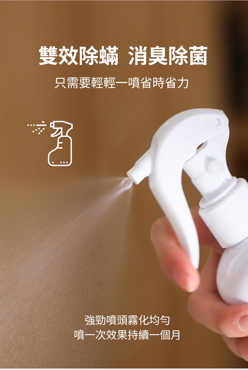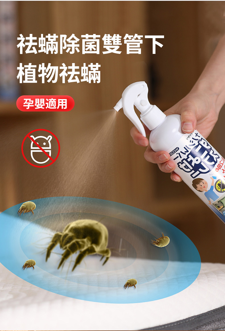 如何快速去除棉被枕頭上的塵螨?日本新推出植物提取除蟎噴霧,床鋪、枕頭皆可噴,天然溫和配方,不含殺蟲劑。防蟎除塵螨噴劑只需均勻噴灑於織物表面,待其自然風乾即可,免洗免曬,輕鬆呵護全家人的健康,大家最喜歡用的除塵螨方法。